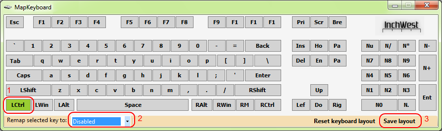 Для запуска разархивируйте и откройте MapKeyboard.exe. Возникнет вкладка, где нужно выделить клавишу для отключения или замены и указать для неё опцию.
